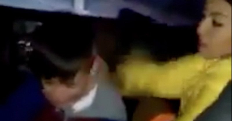 “Deja de portarte así, ¡pendejo!” se le escucha decir a la joven, mientras le suelta varios manotazos al menor, quien llora, mientras deja caer una bolsa de papel que sostenía en las manos. Esto sucede mientras viajan a bordo de un vehículo.